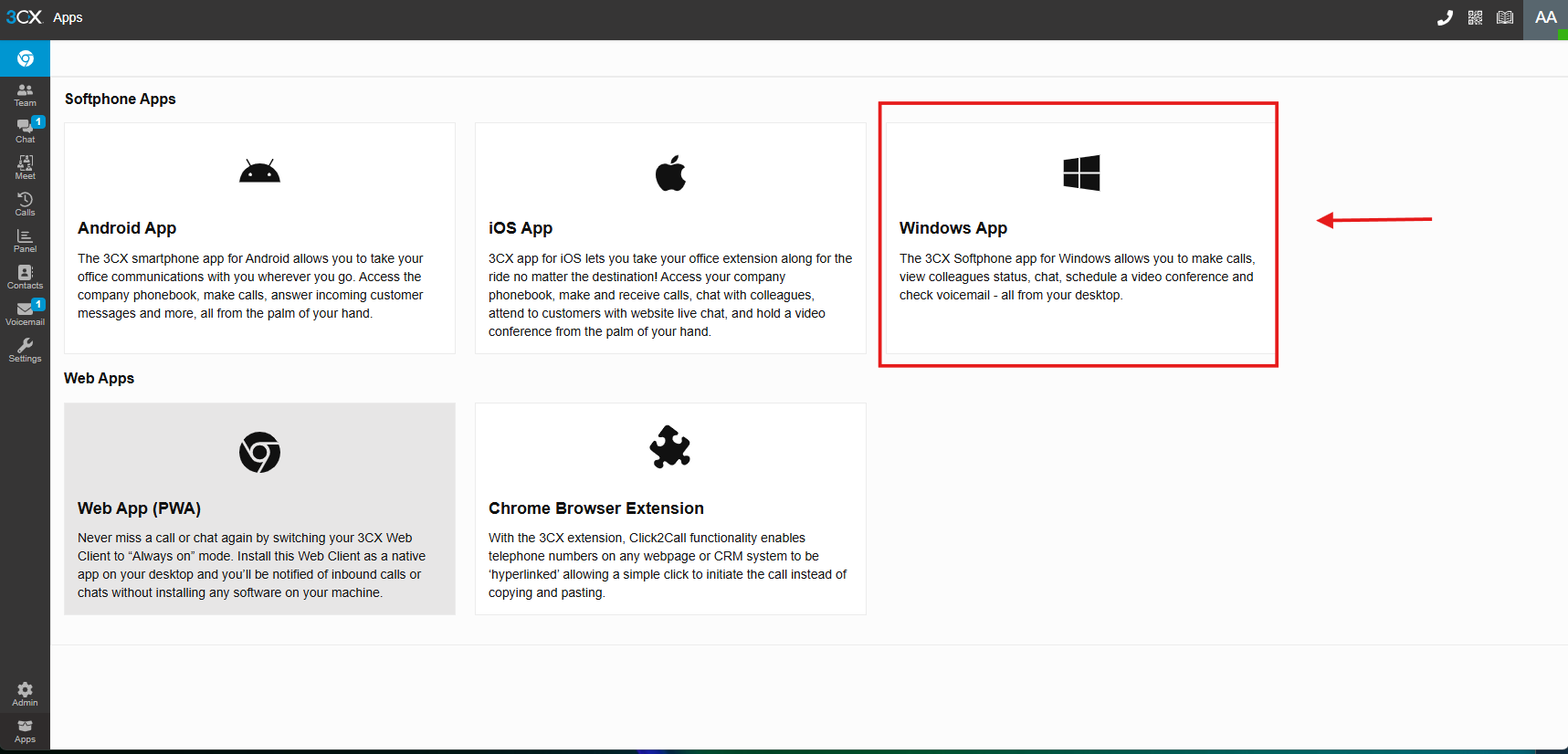 Once you followed the steps to log into your 3CX Webclient you are ready to install the 3CX .